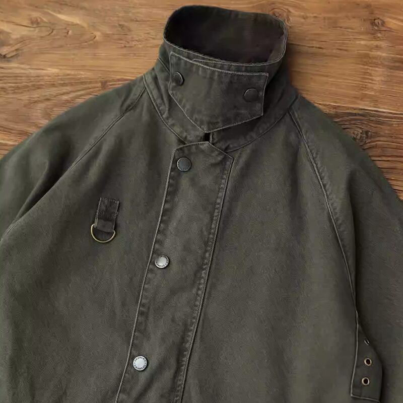 寒い時期には首元のチンストラップまで閉めて着るのも雰囲気抜群でおすすめです。