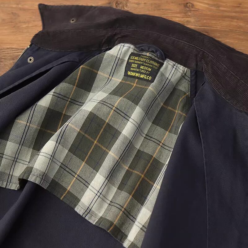裏地のチェック柄がレトロな印象のハンティングジャケット。
