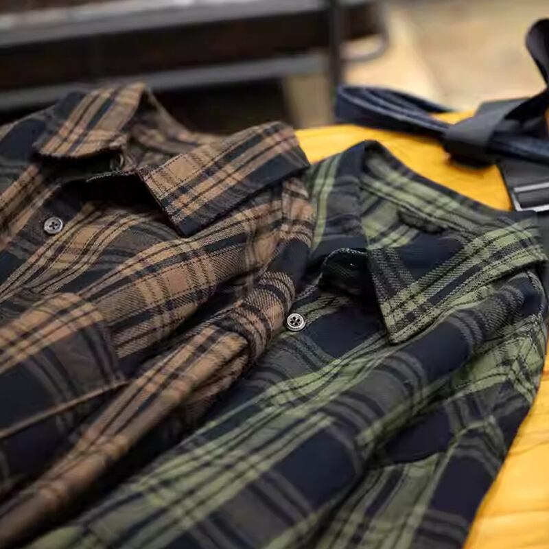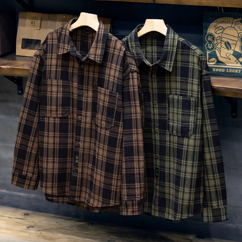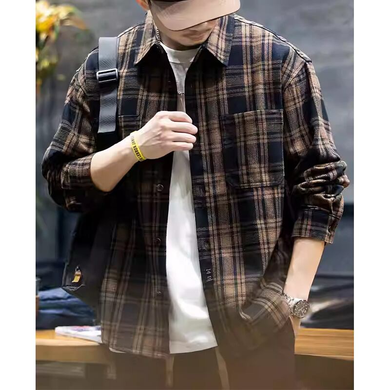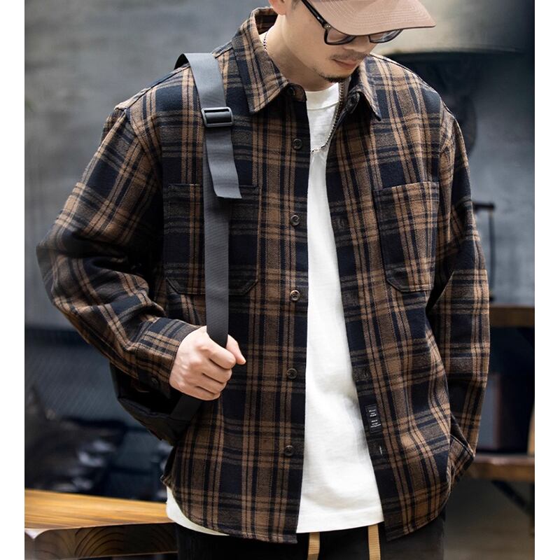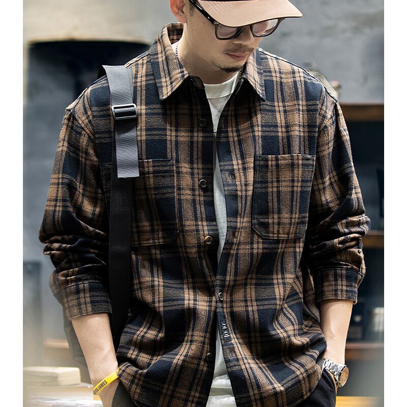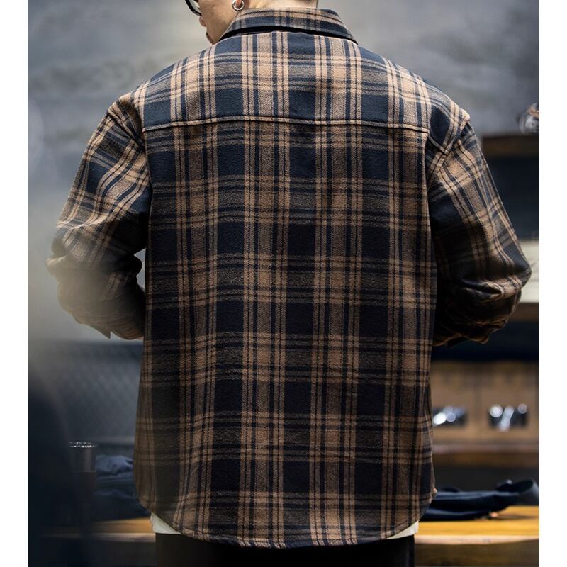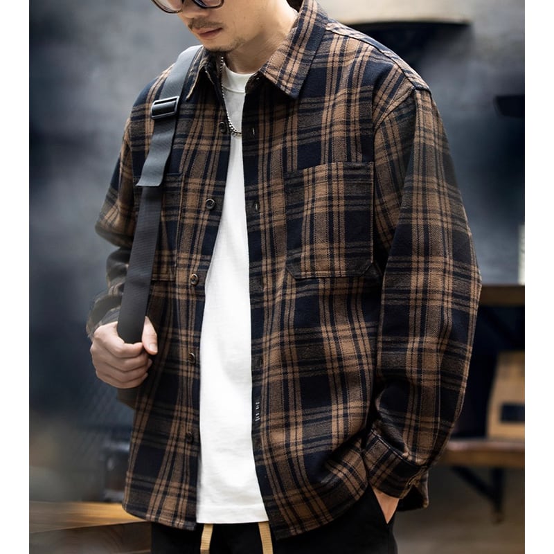 Double-pocket check pattern long-sleeved shirt 00484