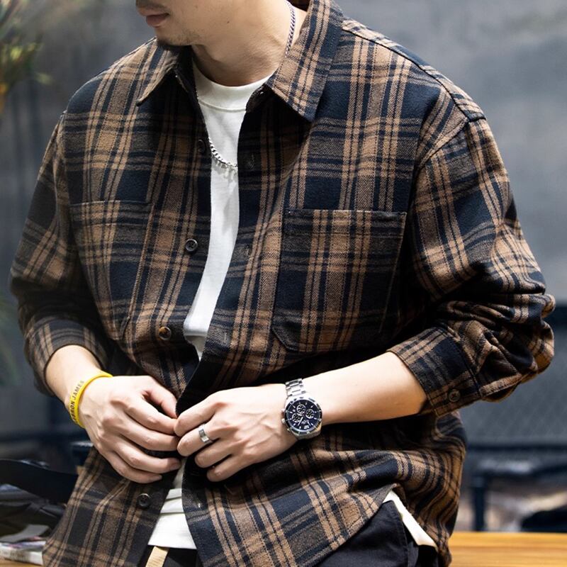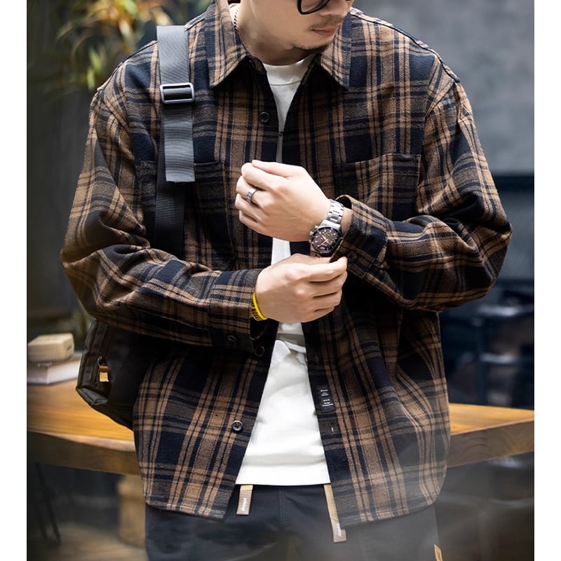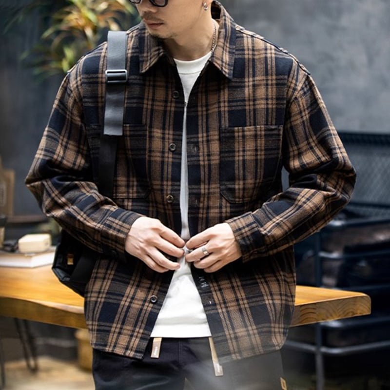 落ち着いた色合いのチェック柄が、アメリカンレトロな印象のシャツ。