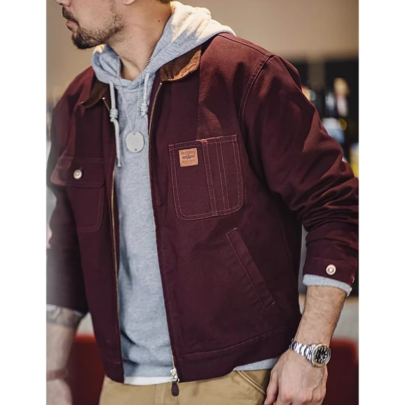 ダック地のガシッとしたタフな質感が特徴的なレトロなワークジャケット。