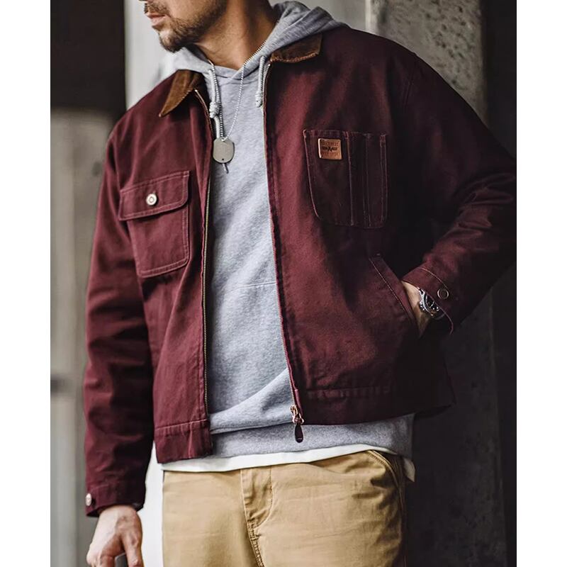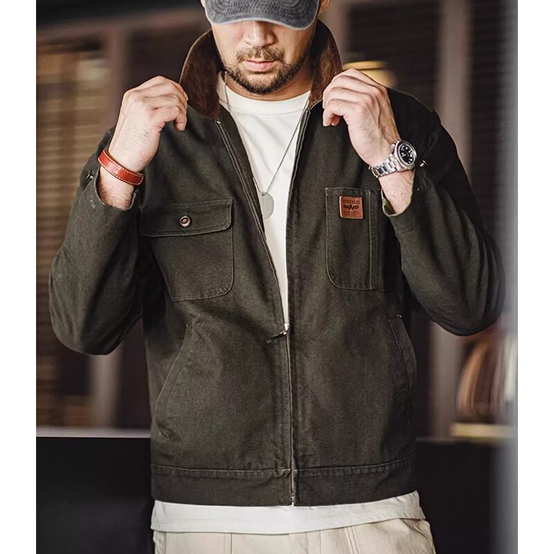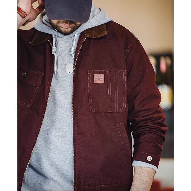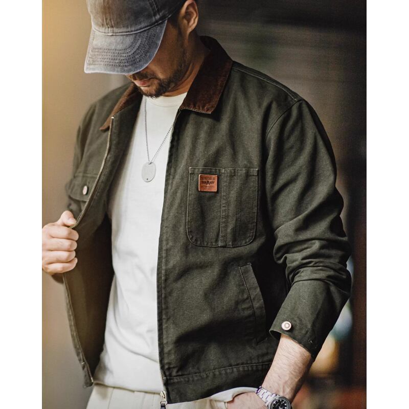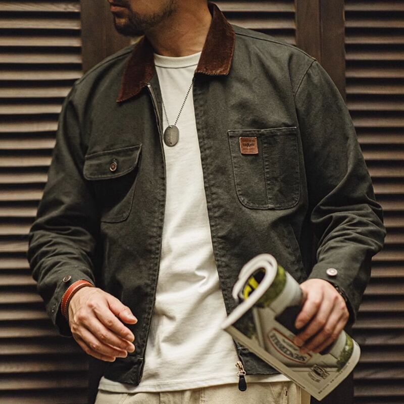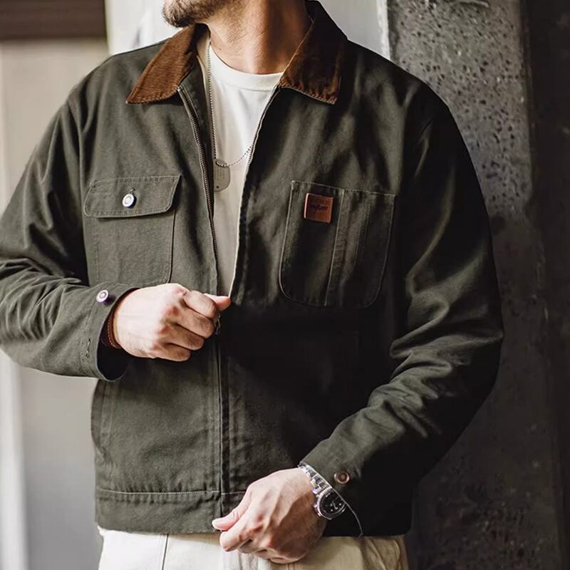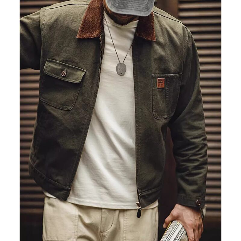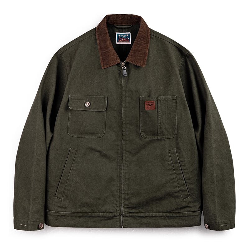 Corduroy collar flap pocket work jacket 00485