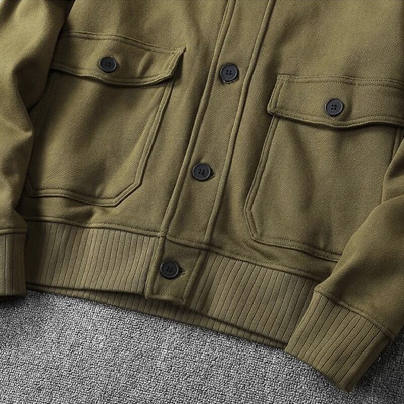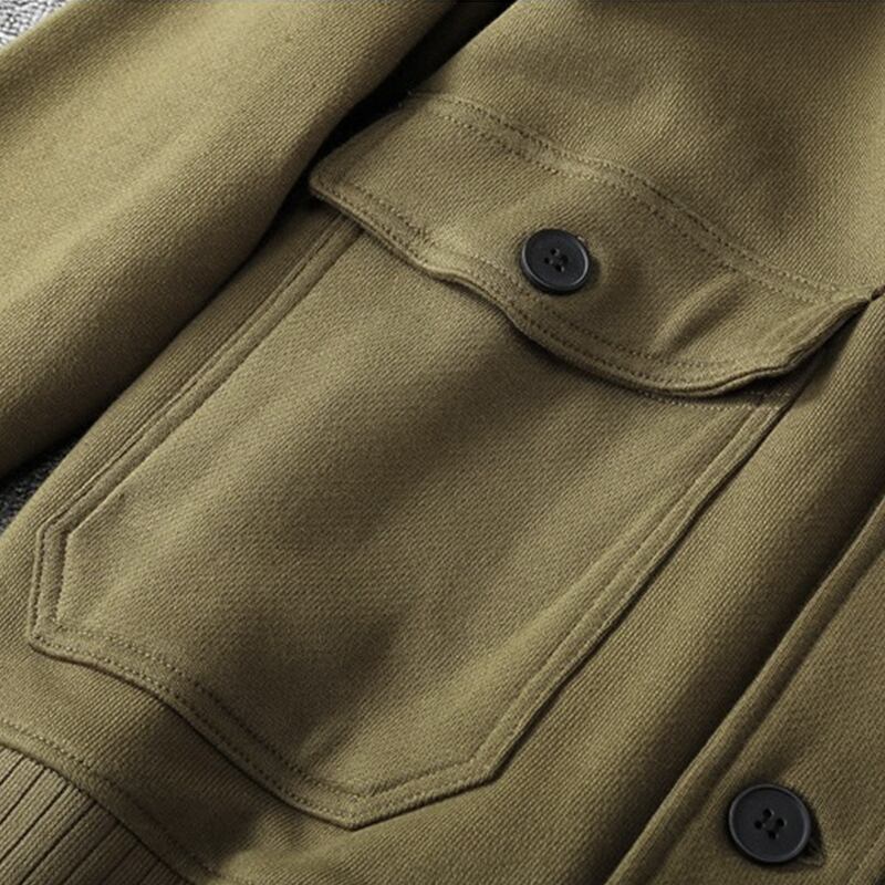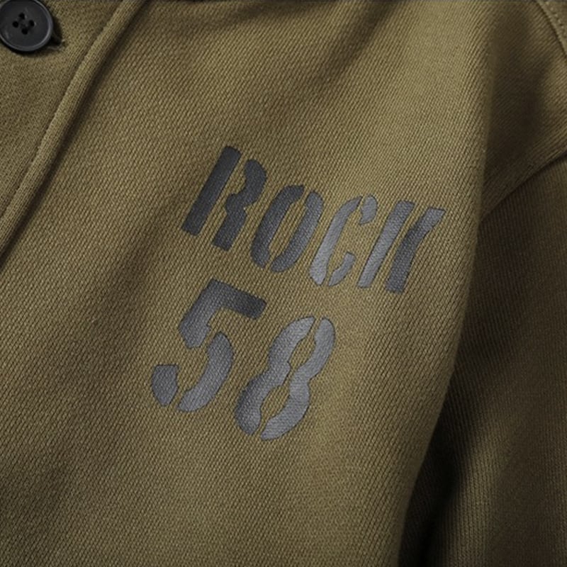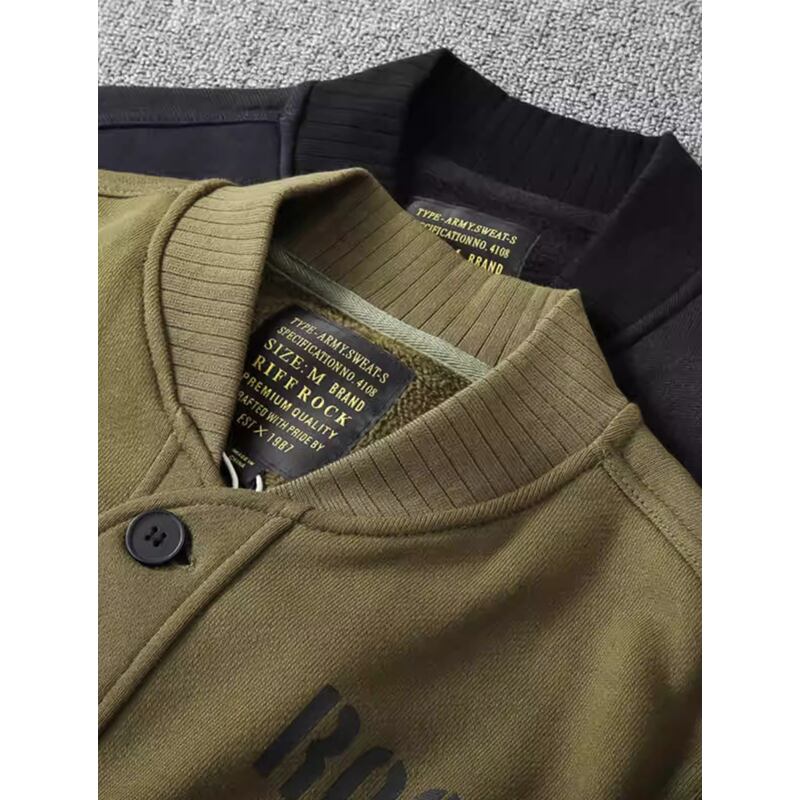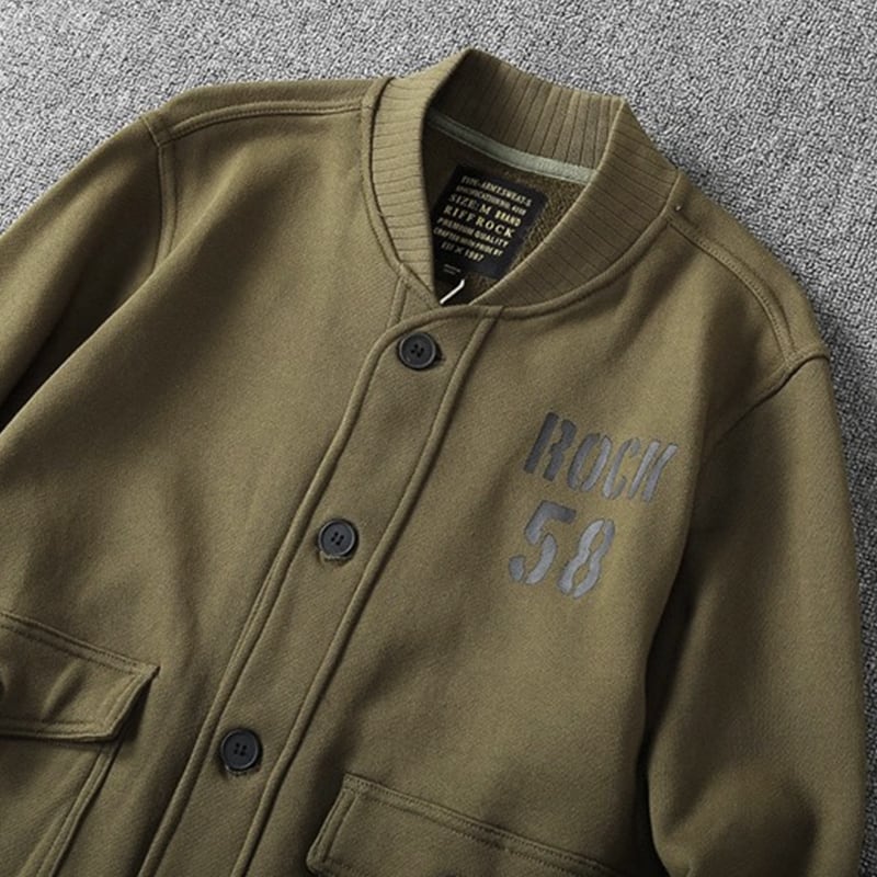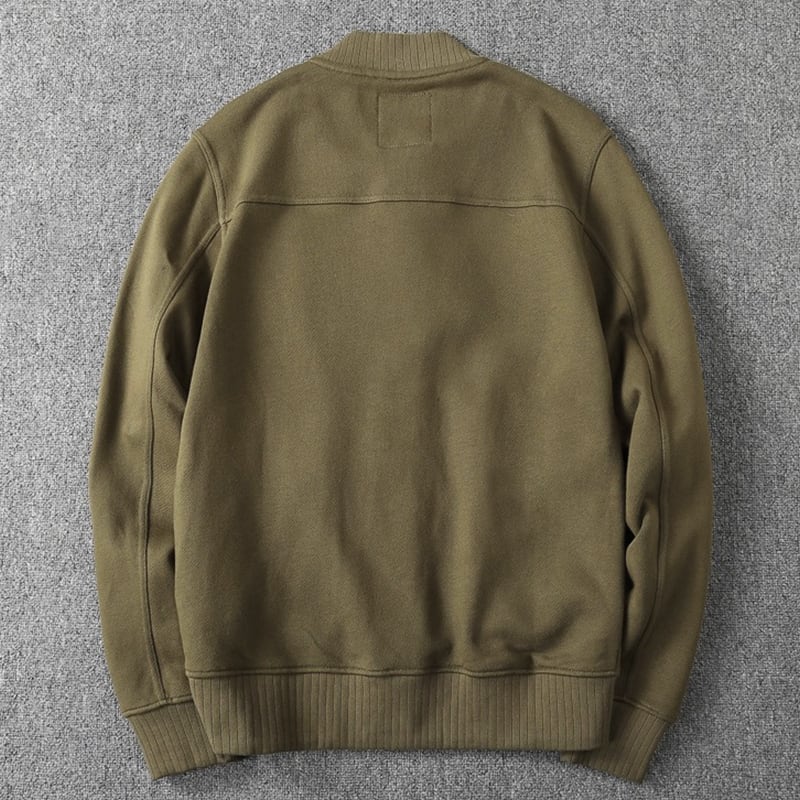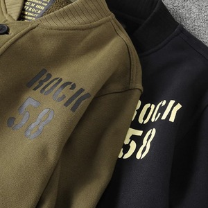 ミリタリーの雰囲気漂うスウェットカーディガン。