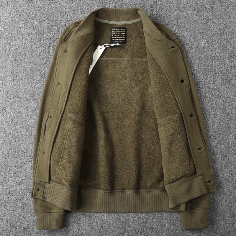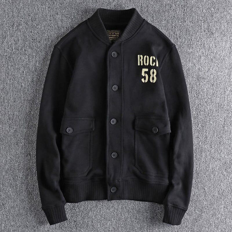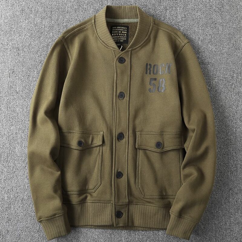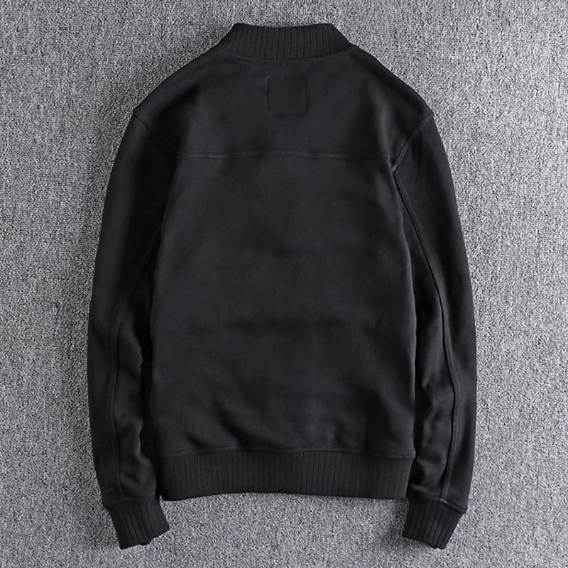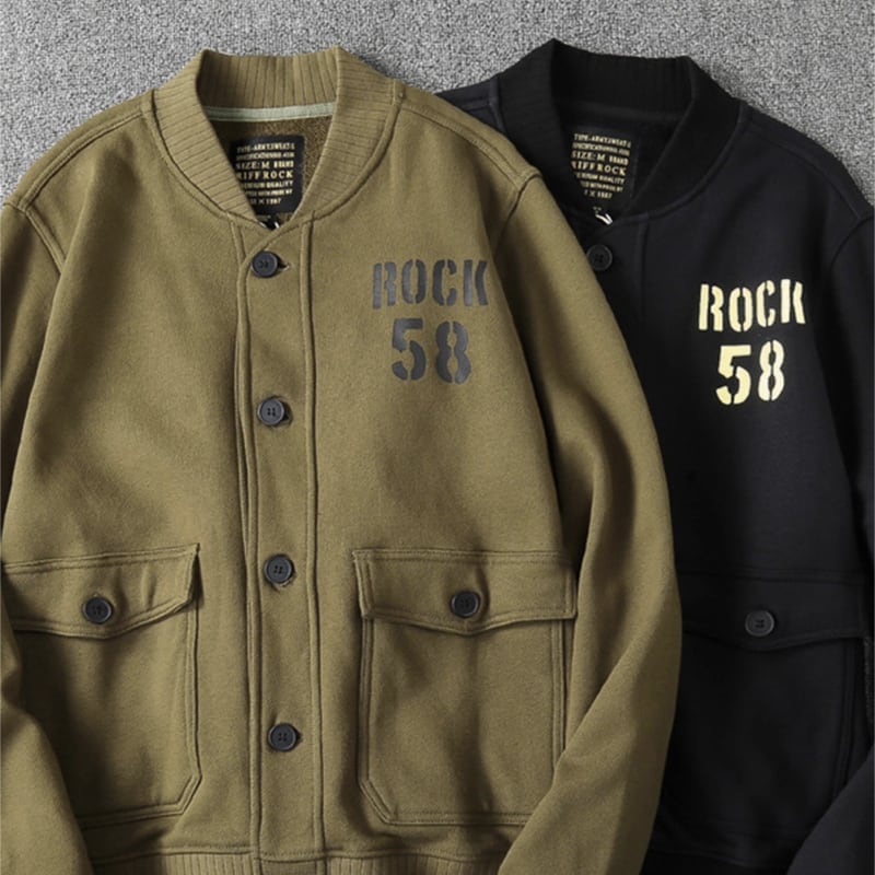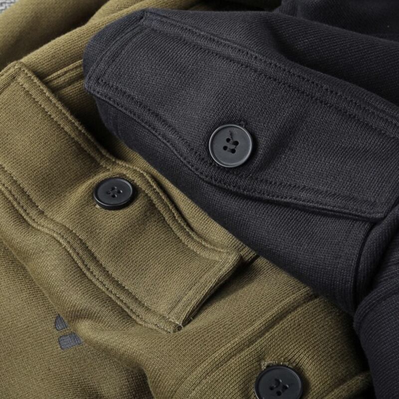 ミリタリーの雰囲気漂うスウェットカーディガン。