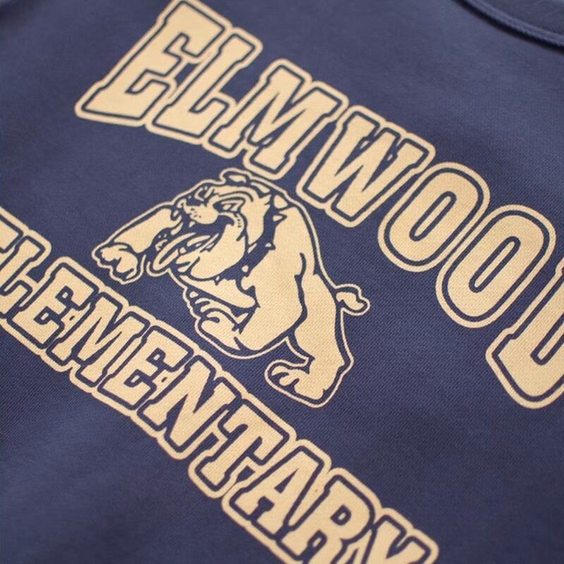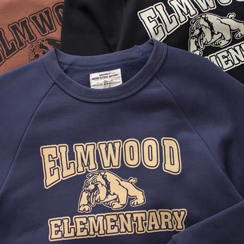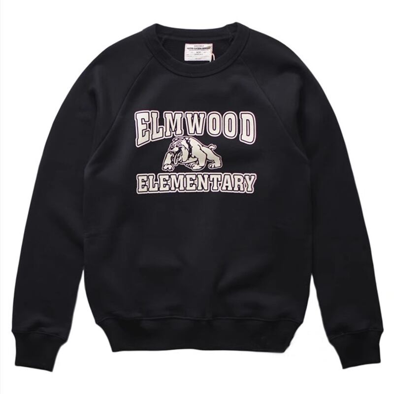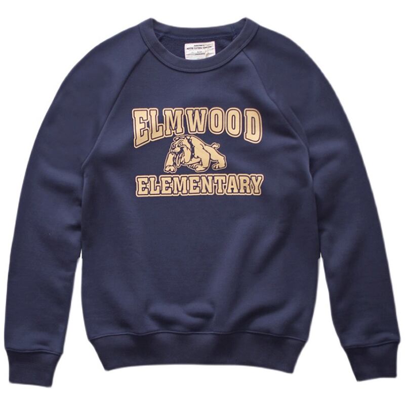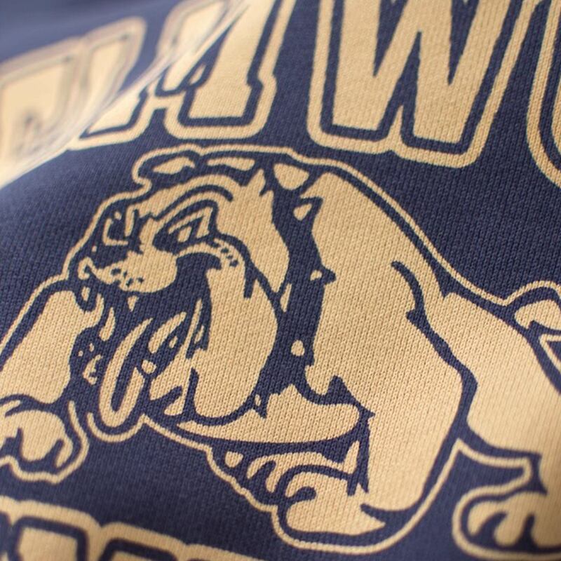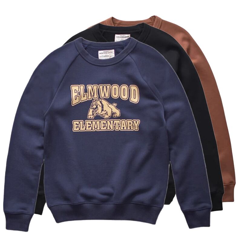 レトロなブルドッグとテキストロゴの刺繍が印象的なスウェット。