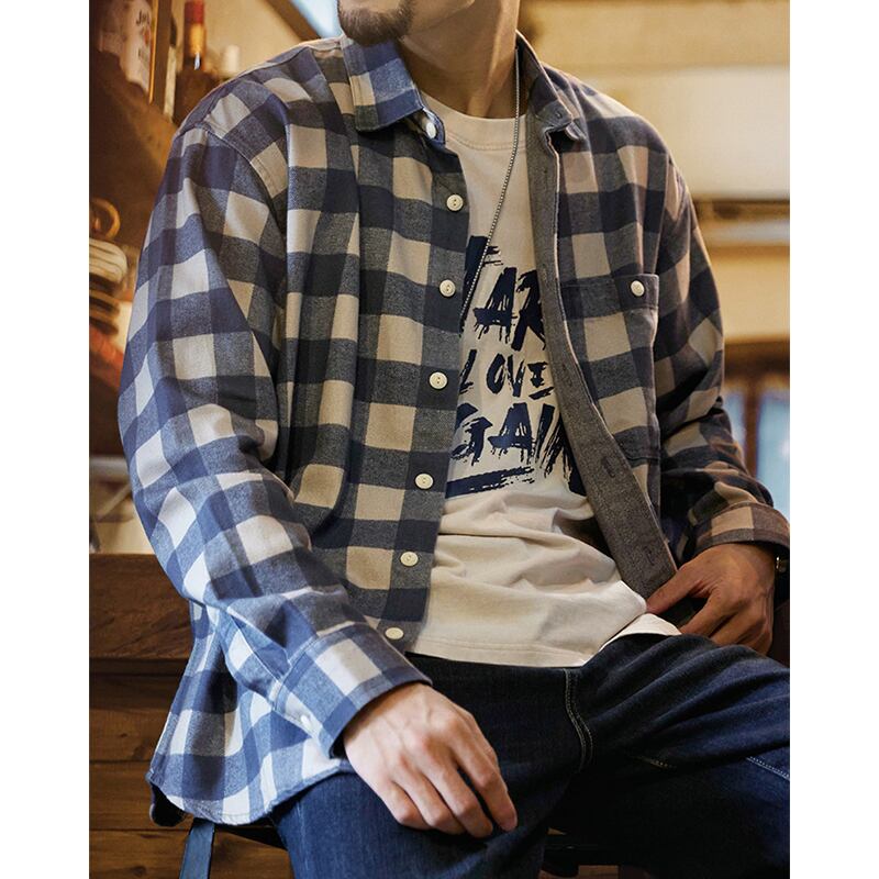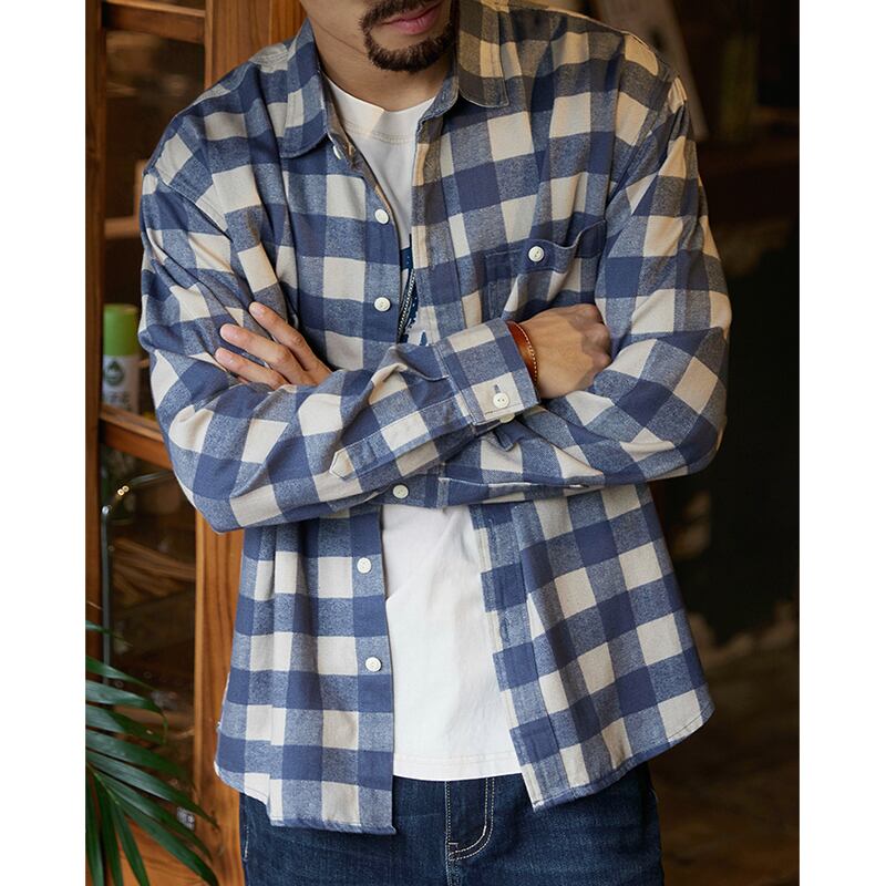 アメリカンレトロな雰囲気漂うブロックチェック柄8オンスシャツ。