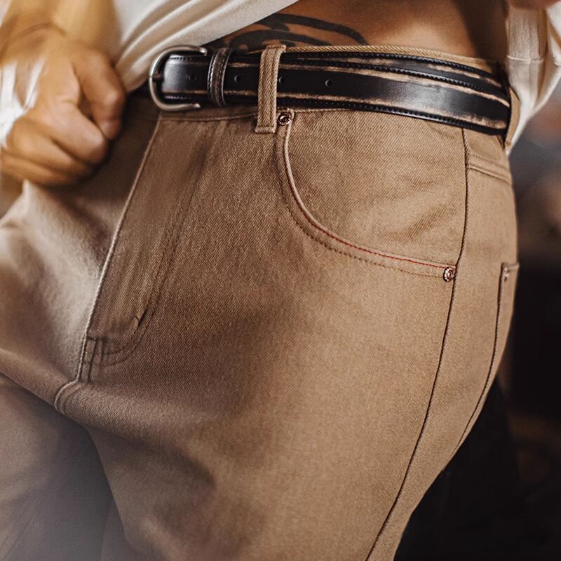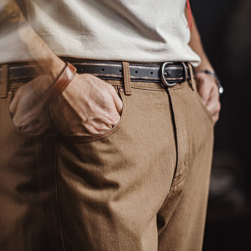 絶妙にアメリカンレトロな雰囲気のカラーデニムパンツです。
