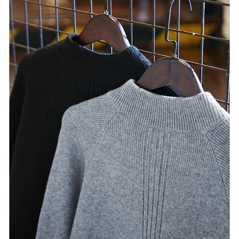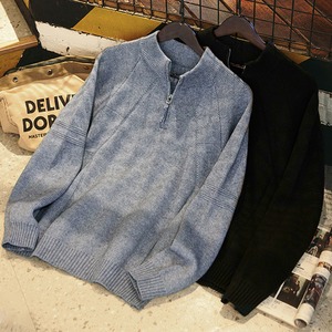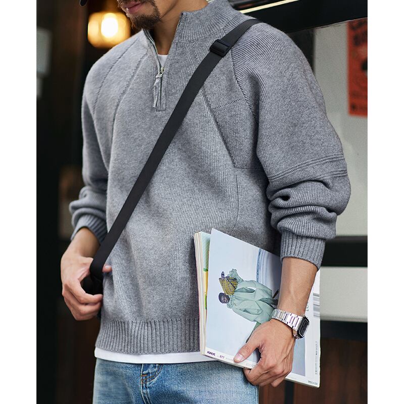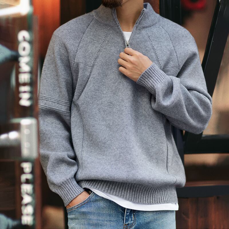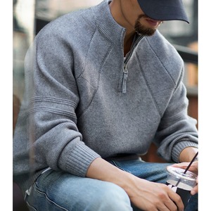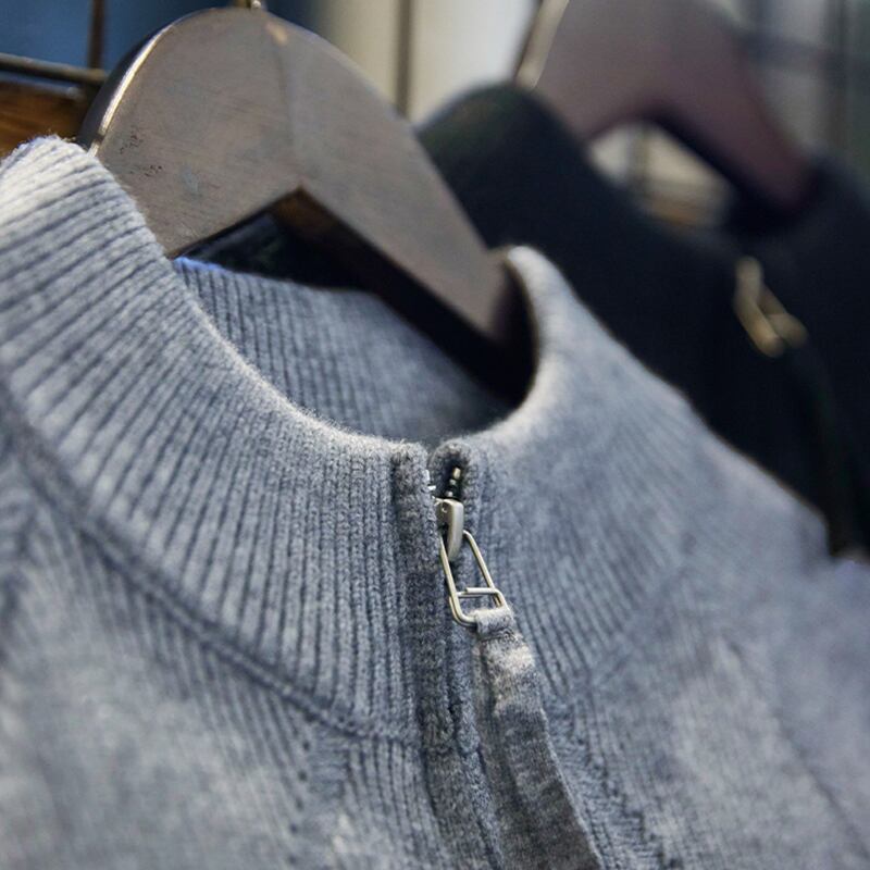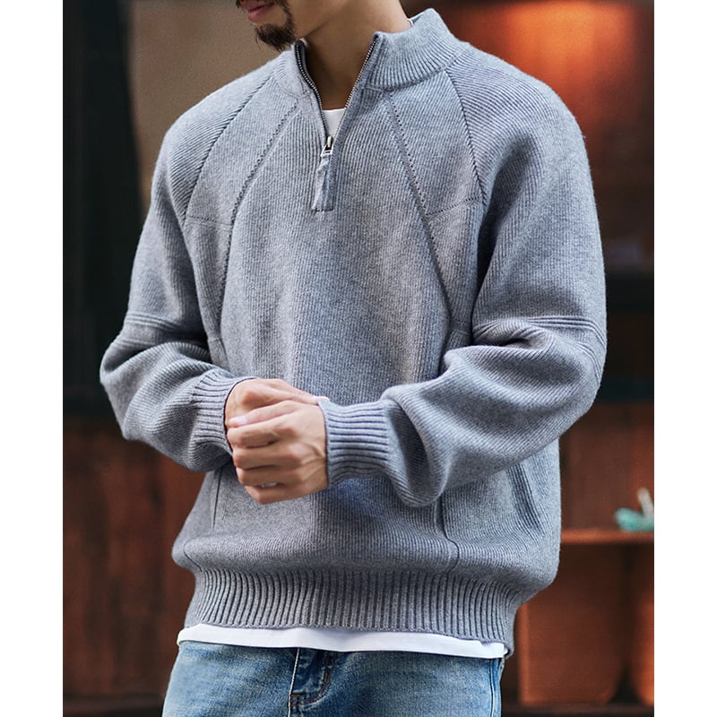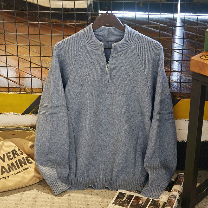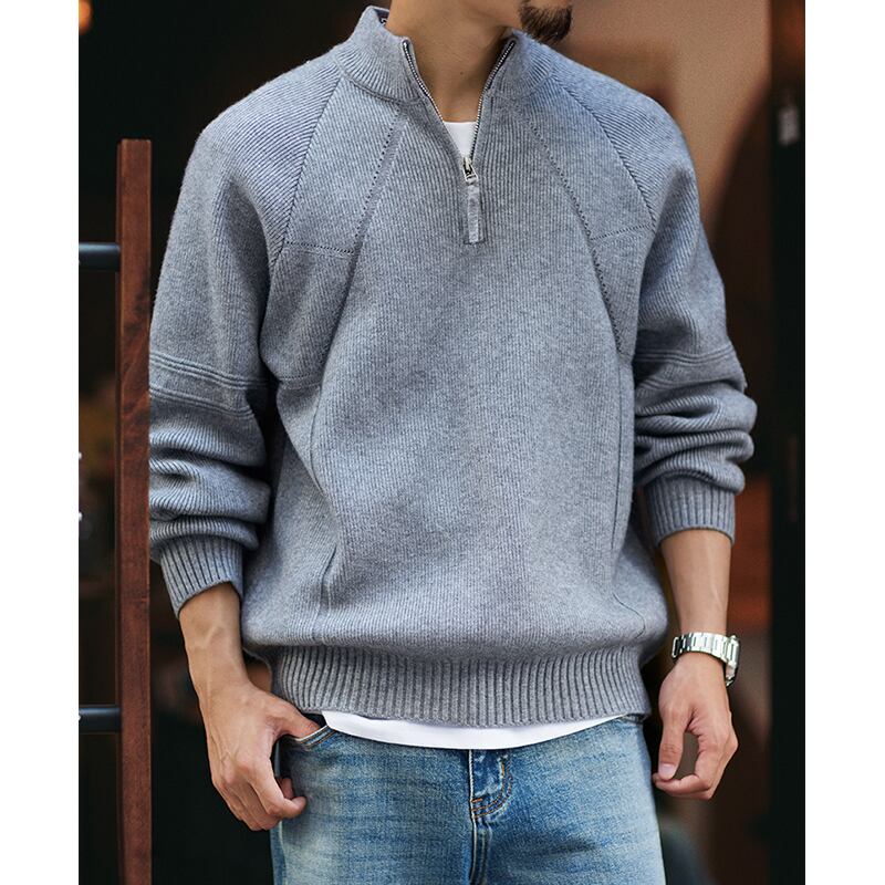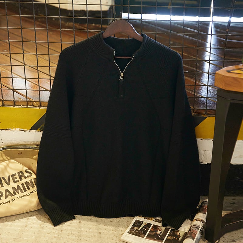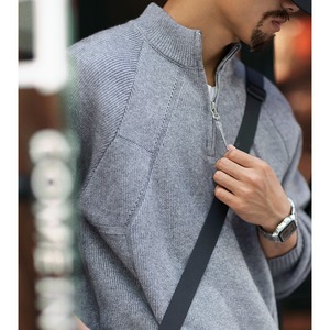 ハーフジップのデザインが特徴的なニットトップス。