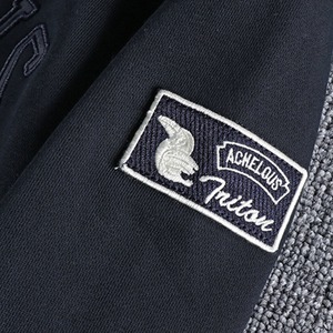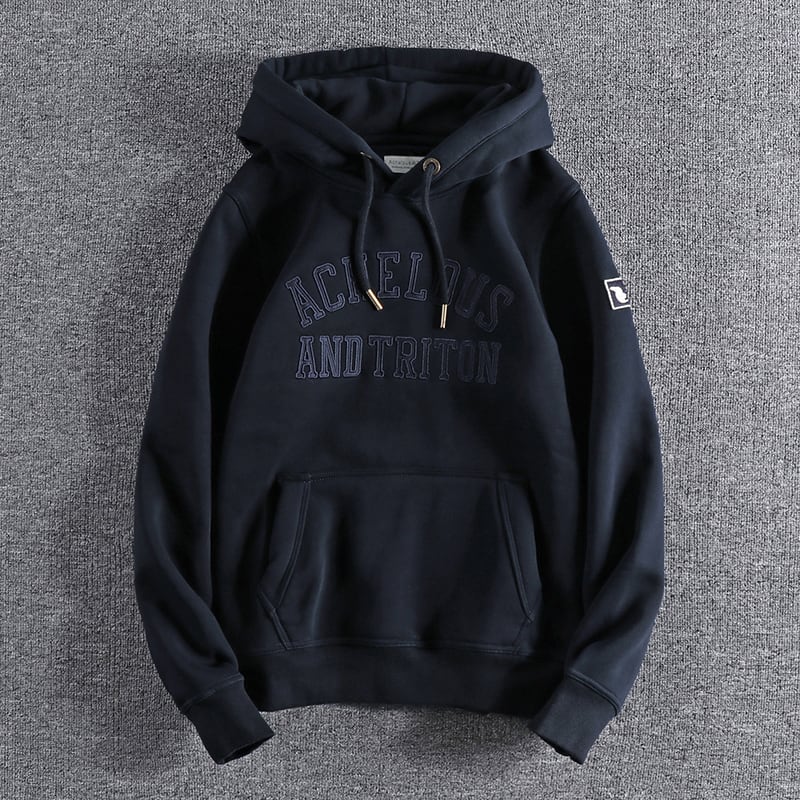 フロントの立体的な刺繍ロゴデザインが目を引くパーカー。