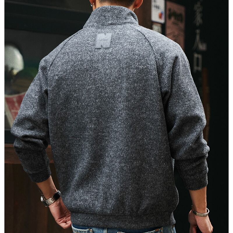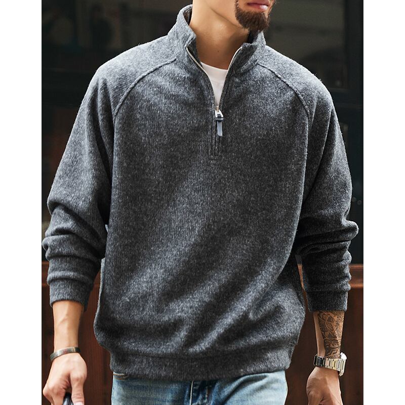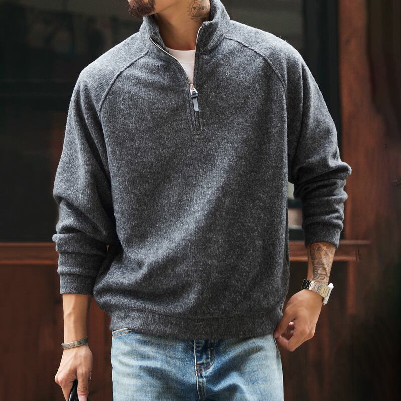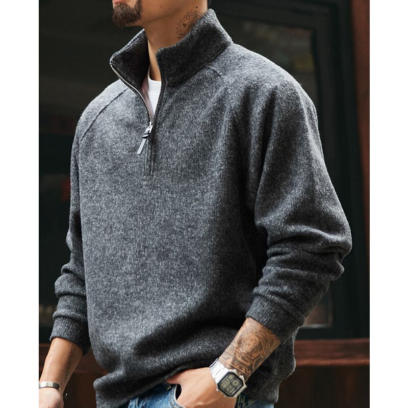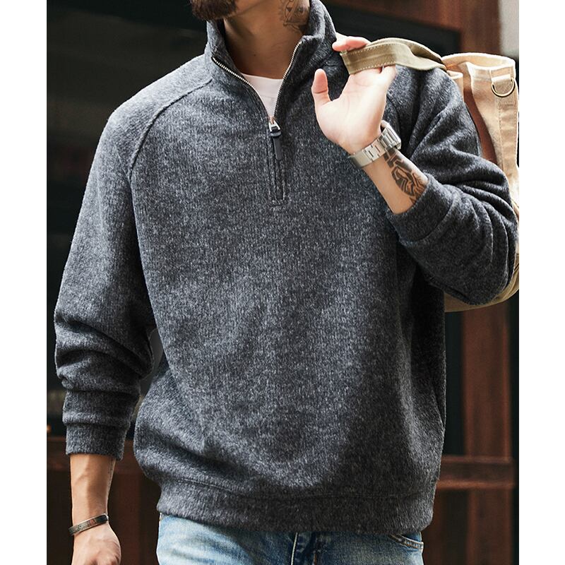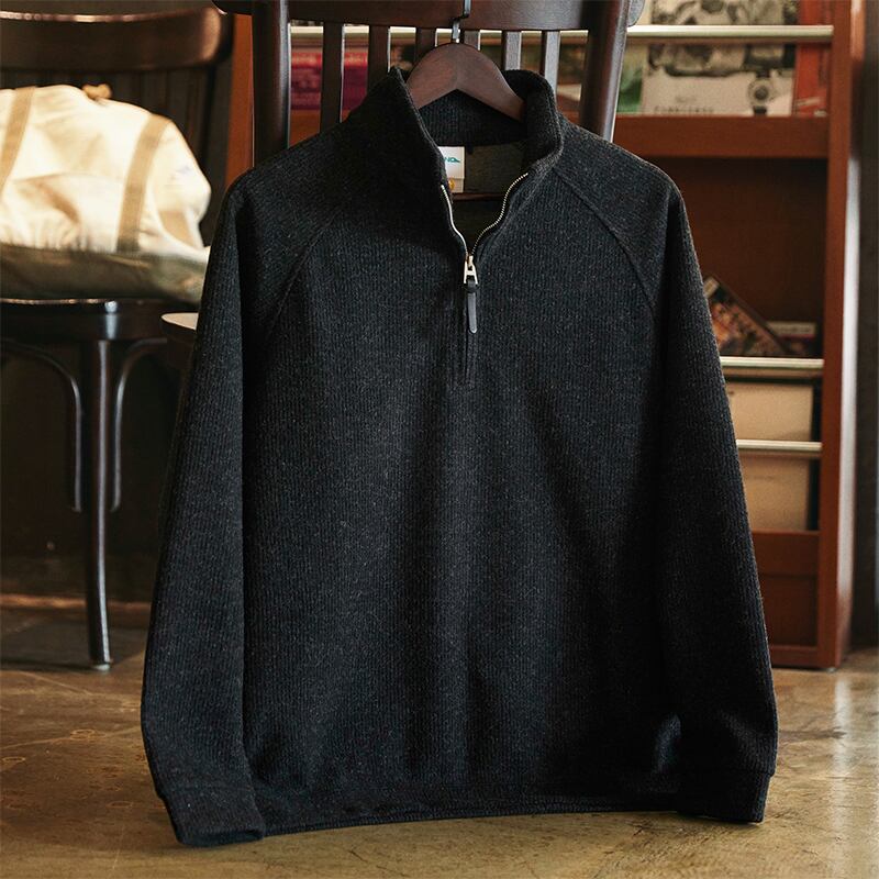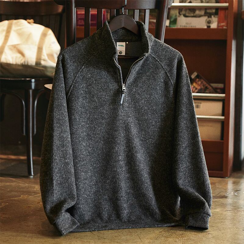 530gのヘビーウェイトな生地とハーフジップが特徴的な長袖ニットトップス。