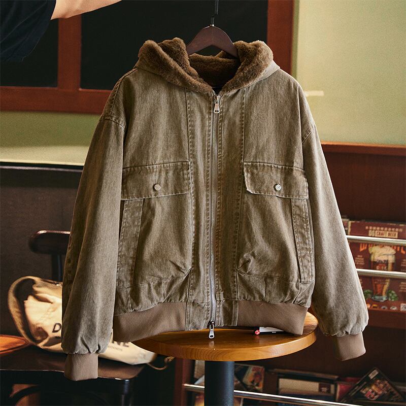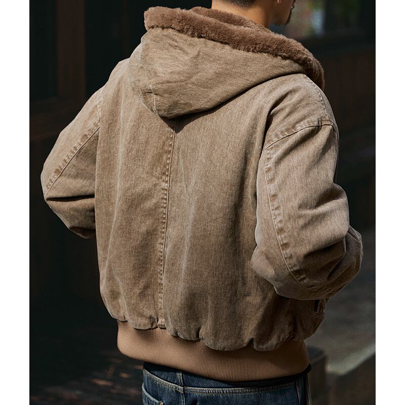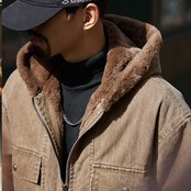 暖かなフードまで配されたフリース地で寒い季節に活躍するアイテムです。