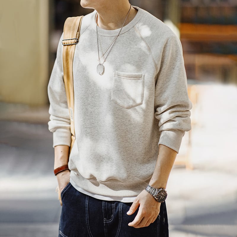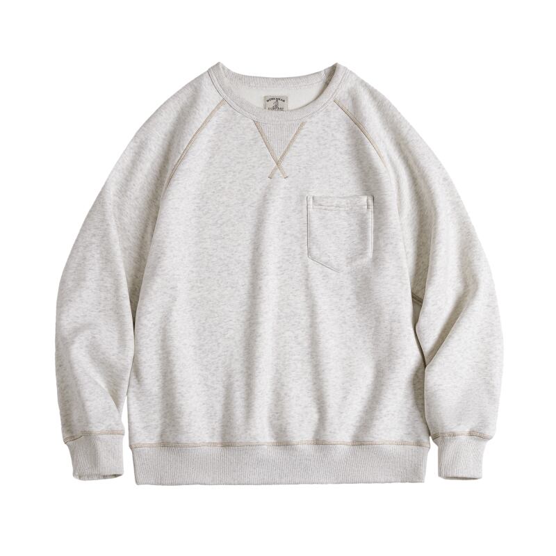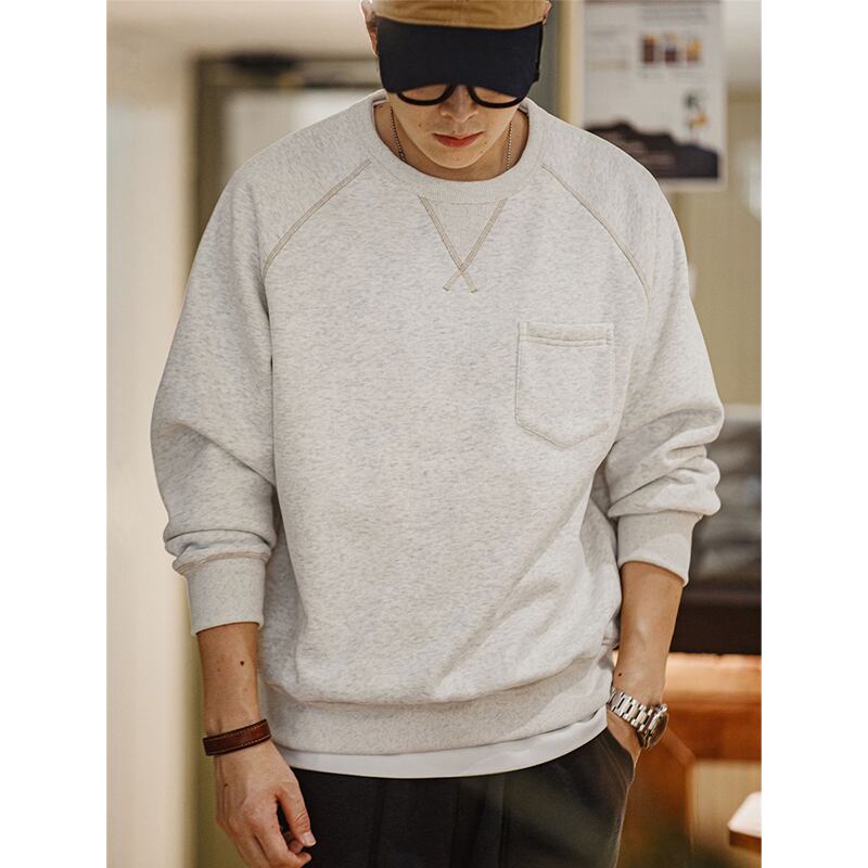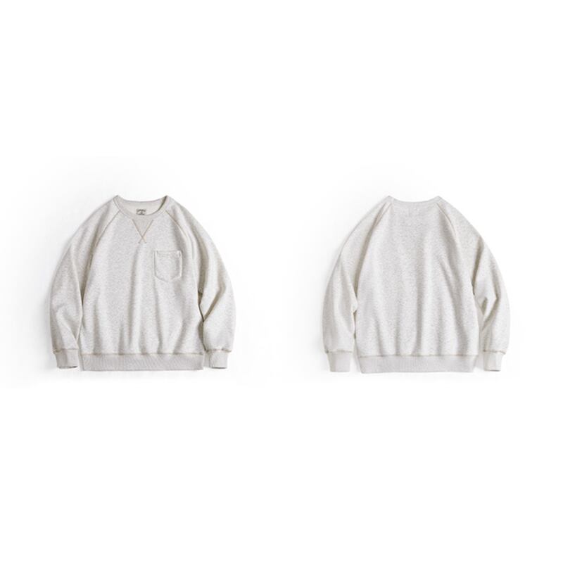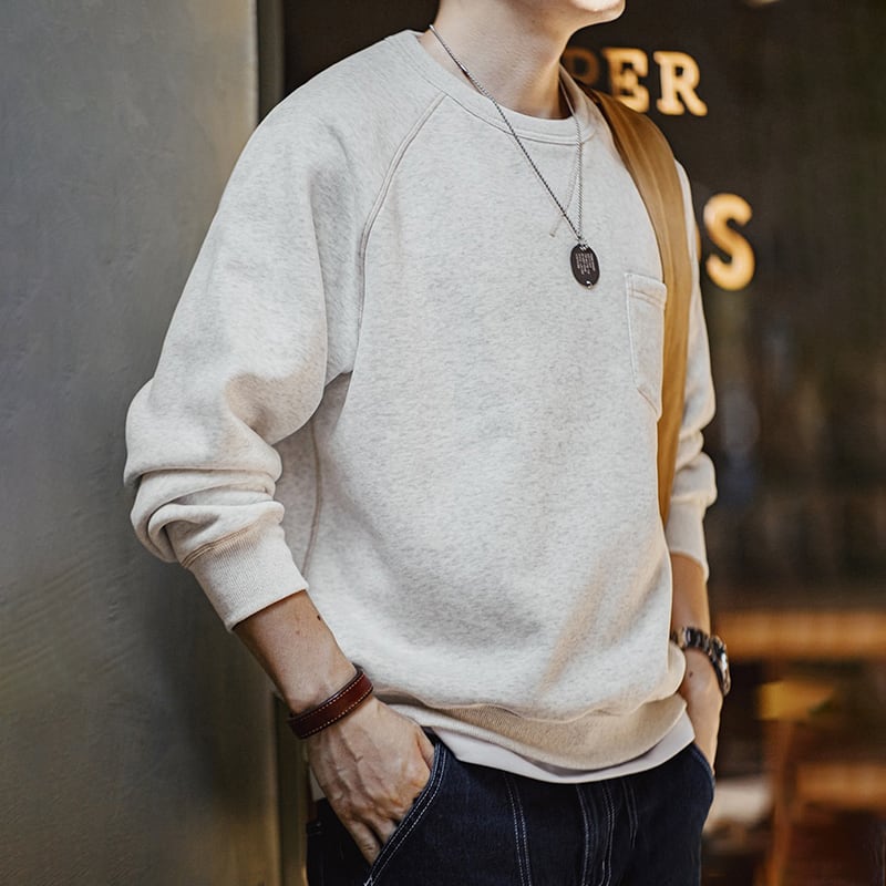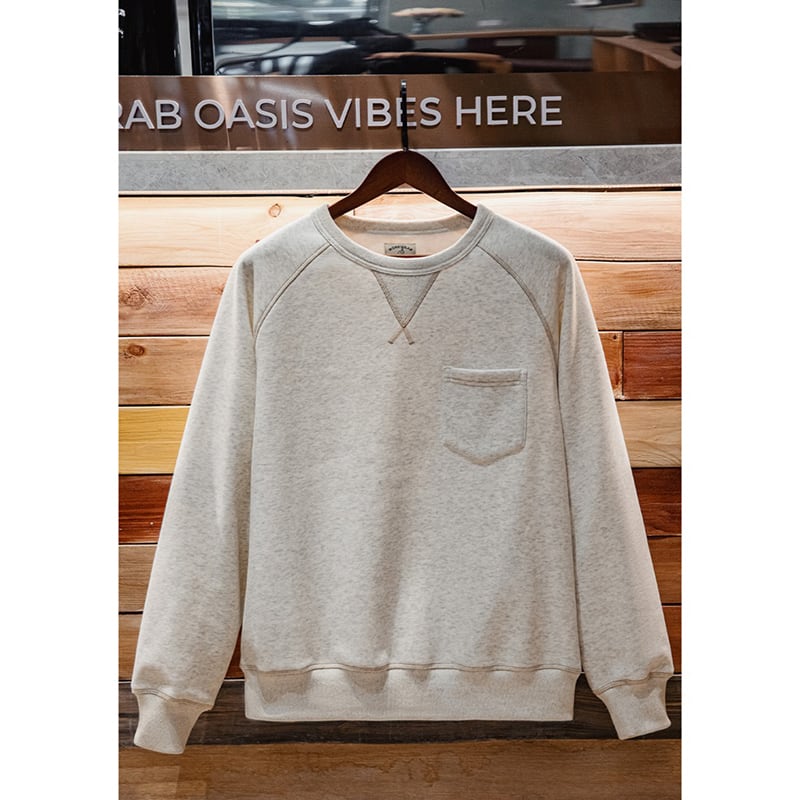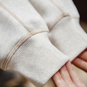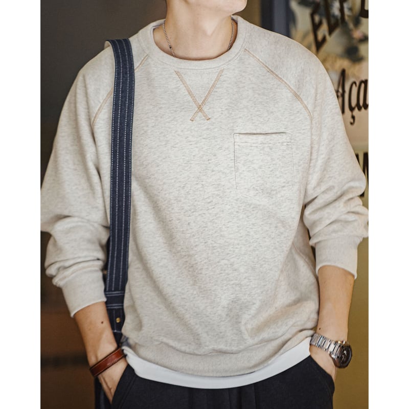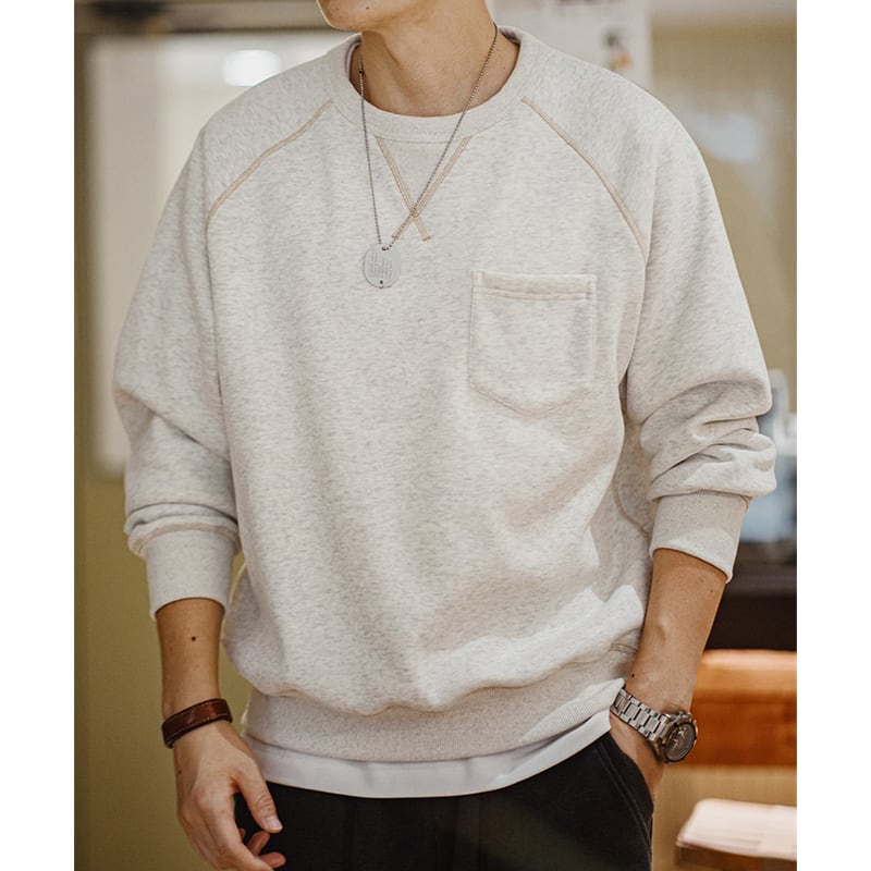 ステッチ遣いとフロントのポケットが特徴的なスウェット。