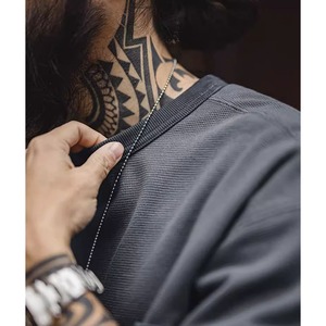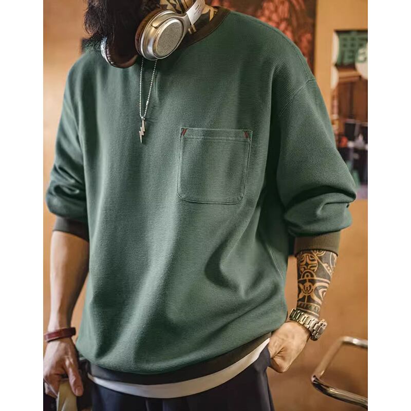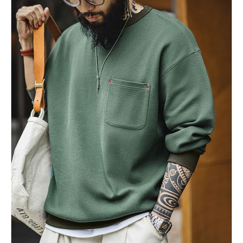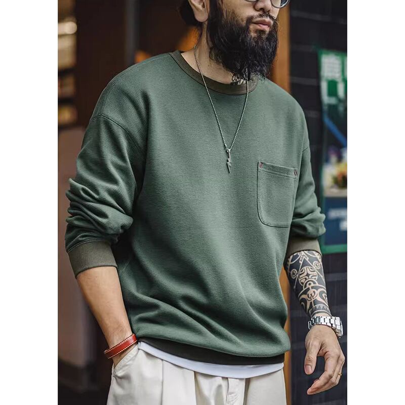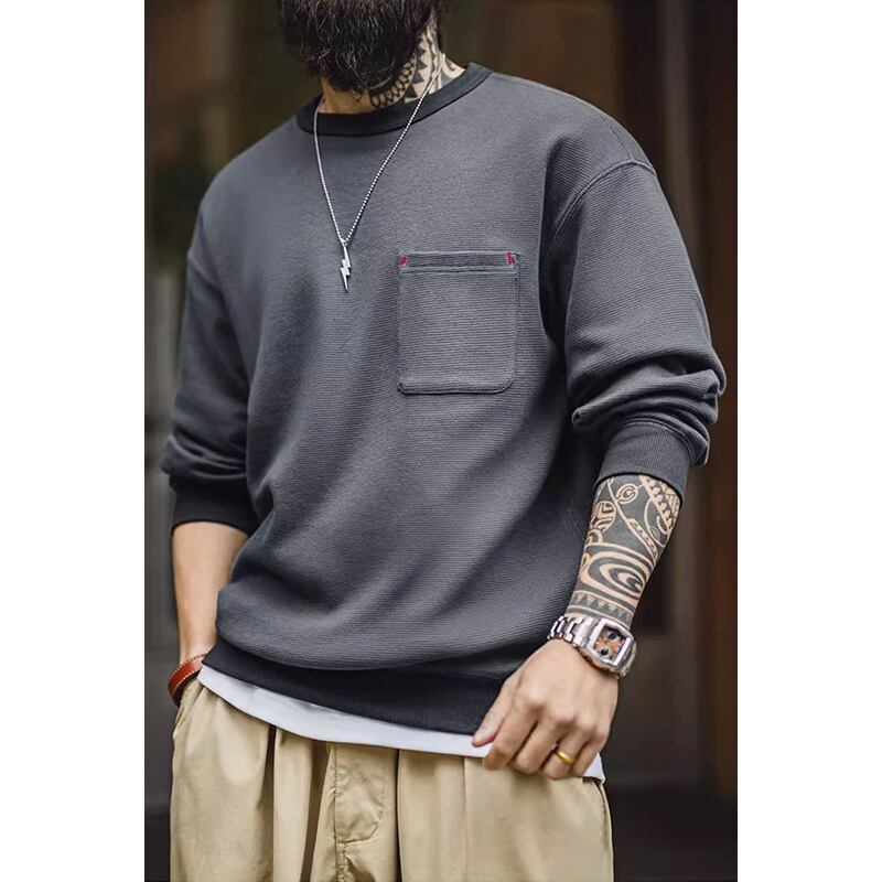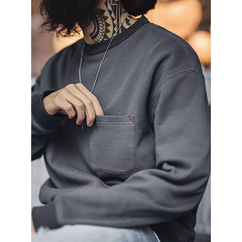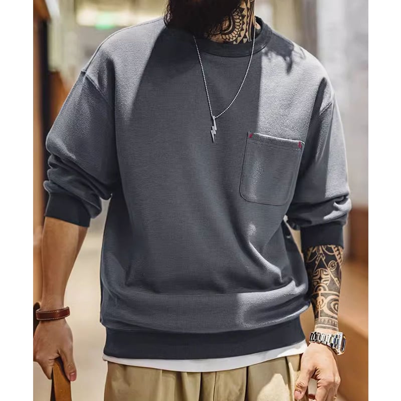 ワッフル生地のクルーネックロングスリーブTシャツ。